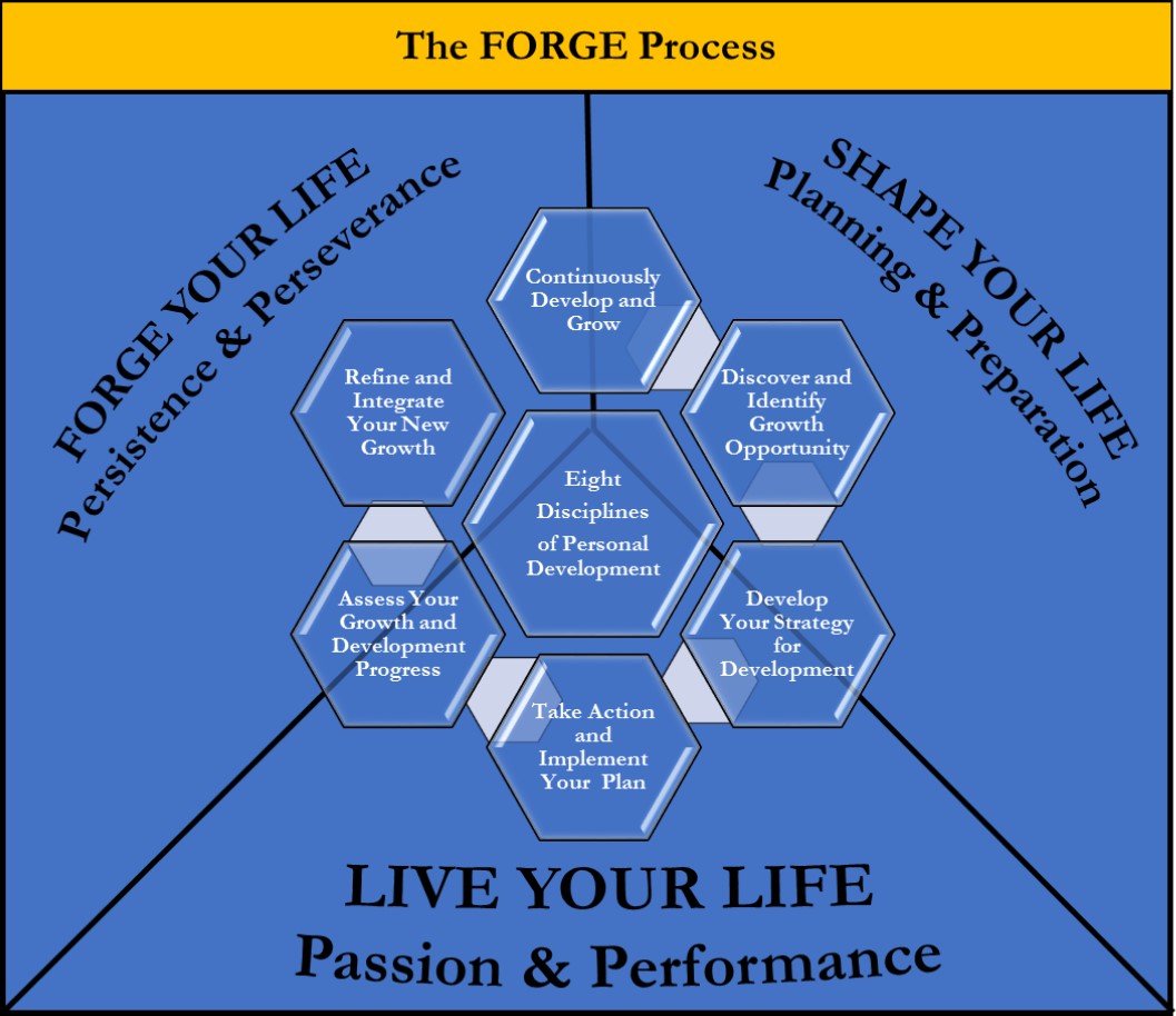 The third phase is FORGE YOUR LIFE and is the persistence and perseverance phase of your life. This phase is about reevaluating your growth and development life strategy, incorporating new growth in your life, and pressing forward in living your unstoppable life.